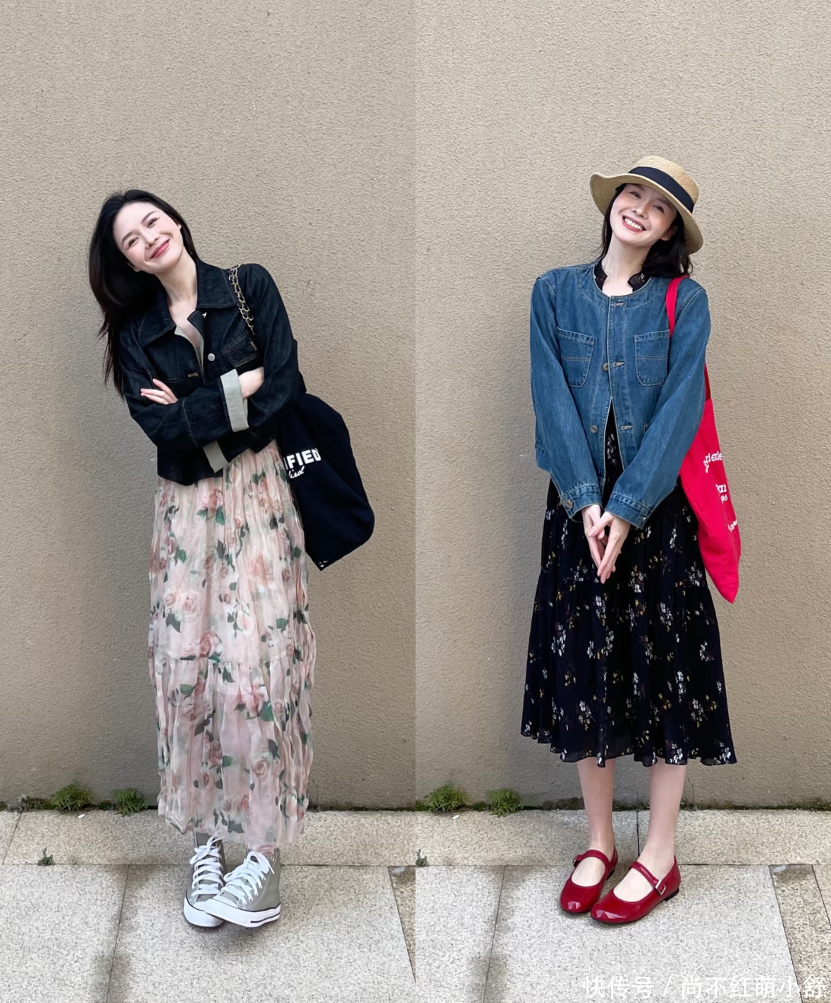 说到搭配,像小舒这样的158小个子,穿碎花裙时离不开高腰线,裙子和鞋子的搭配也很重要。短款碎花裙配小白鞋就OK了,长款的话,中跟单鞋更合适,既显高又有气质。